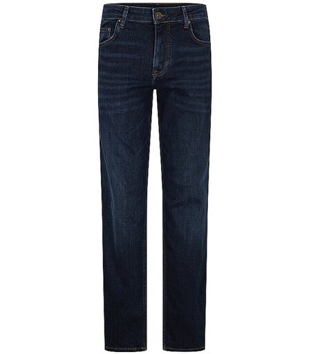 Herren Jeans aus Baumwoll-Stretch Normale Bundhöhe Schließt mit Knopf- und Reißverschluss 5-Pocket-Style Gerader Beinverlauf Unifarben mit heller Waschung Farbbezeichnung: Navy Material: 82% Baumwolle, 16% Polyester, 2% Elasthan ...
