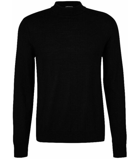 Herren Pullover aus reiner Schurwolle Feinstrick Stehkragen Langarm Unifarben Gerade geschnitten Logo Detail am Saumende Farbbezeichnung: Schwarz Material: 100% Schurwolle ...
