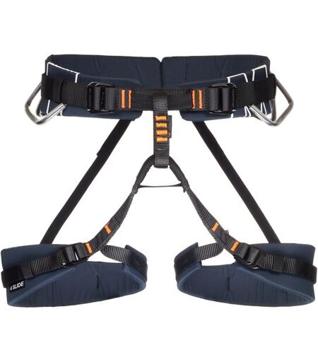 Der 4 Slide Klettergurt ist ideal für Einsteiger und fortgeschrittene Kletterer. Dank seiner vier Slide-Bloc-Schnallen ist er einfach zu bedienen und besonders flexibel auf jede Grösse und Situation einstellbar. Mit den zwei Schnallen an der Hüfte lässt sich der Klettergurt schnell an den Taillenumfang anpassen und zentrieren. Ebenso rasch sind die Beinschlaufen an unterschiedliche Körpergrössen oder die Bekleidung angepasst. Die gute Polsterung macht den 4 Slide besonders bequem. Ein in die Einbindeschlaufe eingewebter roter Stoff scheint durch und warnt, wenn das Gewebe beschädigt ist. ...