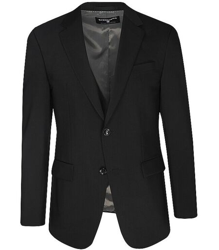 Herren Sakko aus hochwertigem Woll-Mix Reverskragen Langarm Schulterpolster Eine Brusttasche Zwei Pattentaschen Unifarben Gerade Passform Farbbezeichnung: Black Material: 53% Polyester 43% Wolle 4% Elasthan ...
