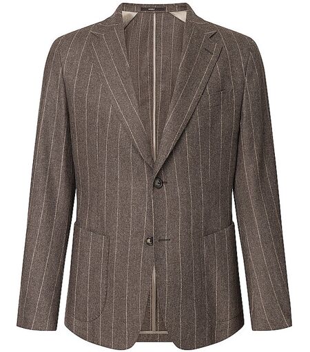 Herren Sakko aus Woll-Mix Reverskragen Langarm Nadelstreif Zwei aufgesetzt Eingriffstaschen Gerade Passform Farbbezeichnung: Braun Material: 37% Wolle 25% Wolle (recycelt) 24% Polyamid 9% Polyacryl ...