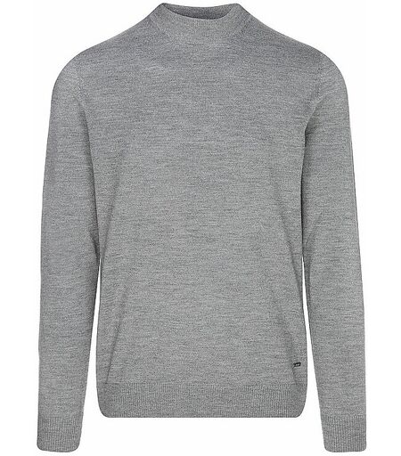Herren Pullover aus reiner Schurwolle Feinstrick Stehkragen Langarm Unifarben Gerade geschnitten Logo Detail am Saumende Farbbezeichnung: Hellgrau Material: 100% Schurwolle ...