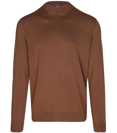 Herren Pullover aus reiner Schurwolle Feinstrick Stehkragen Langarm Unifarben Gerade geschnitten Logo Detail am Saumende Farbbezeichnung: Braun Material: 100% Schurwolle ...