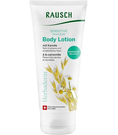 Anwendungsgebiet von RAUSCH Sensitive Body Lotion mit KamilleUm die Haut wieder ins Gleichgewicht zu bringen, ist die RAUSCH Sensitive Body Lotion mit Kamille extra mit einem speziellen präbiotischen Wirkstoff angereichert. Die Hautbarriere wird gestärkt und geschützt. Sehr trockene und empfindliche Haut fühlt sich gepflegt, beruhigt und mit Feuchtigkeit versorgt an, auch dank eines hochwertigen feuchtigkeitsspendenden Wirkstoffs. Und das stets mit einem Hauch Frühling in der Nase: Der populäre Duft nach weißen Blüten und Zitrusfrüchten verleiht der Haut dezent floral-frische Noten.