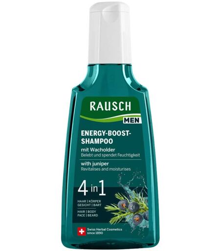 Anwendungsgebiet von Rausch Energy-Boost-Shampoo mit WacholderDas Rausch Energy-Boost-Shampoo mit Wacholder für Männer, die Natürlichkeit und Effizienz schätzenWenn Sie regelmäßig duschen, wissen Sie, wie wichtig eine sanfte und gleichzeitig wirksame Pflege für Haut und Haar ist. Dieses speziell für Männer entwickelte Shampoo vereint gleich vier Anwendungen in einem Produkt: Es reinigt Haar, Körper, Gesicht und Bart gründlich, ohne zu beschweren – ideal für den täglichen Einsatz.Angereichert mit hauseigenen Extrakten aus Wacholder und Rosmarin, bietet das Rausch Energy-Boost-Shampoo mit Wacholder eine wohltuende Pflege mit belebender Frische. Der feuchtigkeitsspendende Wirkstoff unterstützt eine geschmeidige Haut und kräftigt gleichzeitig das Haar. Der frische Duft sorgt für ein vitalisierendes Duscherlebnis, das lange anhält.Ihre Vorteile auf einen Blick:Vielseitige 4in1-Lösung – ideal für Haar, Körper, Gesicht und BartMilde Reinigung mit intensiver FeuchtigkeitsversorgungErfrischender, belebender Duft für einen energiereichen Start in den TagMit langanhaltendem 24h-Feuchtigkeits-EffektErgiebig und perfekt für die tägliche Anwendung geeignetUnterstützt die natürliche Schutzbarriere von Haut und HaarVegan, silikonfrei und mit 92 % Inhaltsstoffen natürlichen UrsprungsWirkstoffe / Inhaltsstoffe / ZutatenRausch Energy-Boost-Shampoo mit Wacholder enthält:Aqua, Sodium Laureth Sulfate (ex Coco), Coco-Betaine, Laureth-2, Juniperus Communis Fruit Extract, Rosmarinus Officinalis Leaf Extract, Calendula Officinalis Flower Extract, Saccharide Isomerate, Glycerin, Sodium Anisate, Sodium Levulinate, Panthenol, Lauryl Methyl Gluceth-10 Hydroxypropyldimonium Chloride, Alcohol Denat., Sodium Chloride, Citric Acid, Sodium Citrate, Phenoxyethanol, Sodium Salicylate, Benzoic Acid, Dehydroacetic Acid, Parfum, Benzotriazolyl Dodecyl p-Cresol, Tris (Tetramethylhydroxypiperidinol) Citrate, CI 42090 (101).GegenanzeigenBei bekannter Überempfindlichke ...