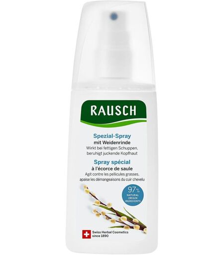 Anwendungsgebiet von RAUSCH Spezial-Spray mit WeidenrindeRAUSCH Spezial-Spray mit Weidenrinde - Das Spray bei fettigen Schuppen und juckender Kopfhaut. Es beruhigt bei allgemeinen Kopfhautproblemen, befreit nachhaltig von fettigen Schuppen und bekämpft gleichzeitig deren Ursache.