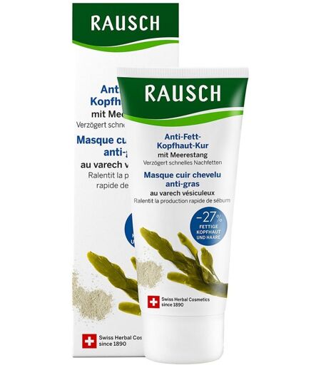 Anwendungsgebiet von RAUSCH Anti-Fett-Kopfhaut-Kur mit MeerestangRAUSCH Anti-Fett-Kopfhaut-Kur mit Meerestang absorbiert überschüssiges Fett, reguliert die Talgproduktion und mildert dabei unangenehmen Juckreiz und Rötungen. Die Kur ist die ideale Vorbereitung auf die anschließende Haarwäsche und sorgt für eine deutlich weniger fettige Kopfhaut und weniger fettiges Haar. Die Kopfhaut wird erfrischt und ihr natürliches Gleichgewicht wieder hergestellt. Mit ihrer einzigartigen Formel verzögert die Kur das schnelle Nachfetten und macht das häufige Haarewaschen überflüssig. Mit Lava- und grüner Tonerde, kolloidalem Schlamm sowie wertvollen Extrakten aus Meerestang, Salbei und Algen.Wirkungsweise von RAUSCH Anti-Fett-Kopfhaut-Kur mit MeerestangRAUSCH Anti-Fett-Kopfhaut-Kur mit Meerestang wird bei fettigem Haar direkt auf die trockene Kopfhaut gegeben und ist die ideale Vorbereitung für die anschließende Haarwäsche. Während der 10 bis 15-minütigen Einwirkzeit entwickelt die Fett-Weg-Kur mit nährstoffreichem Schlamm ihre volle Wirkung: Sie beruhigt unangenehmen Juckreiz, erfrischt und absorbiert überschüssiges Fett. Dank ihrer körnigen Textur sorgt sie beim Abwaschen zudem für einen leichten Peeling-Effekt.