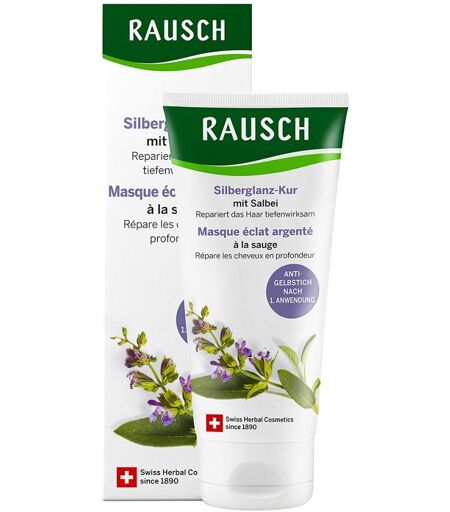 Anwendungsgebiet von RAUSCH Silberglanz-Kur mit SalbeiRAUSCH Silberglanz-Kur mit Salbei repariert das Haar tiefenwirksam und neutralisiert den Gelbstich nachhaltig bereits nach der ersten Anwendung. Das Haar erhält einen natürlichen, kühlen Farbton. Das pflanzliche Keratin wirkt Haarbruch sowie dünnem und kraftlosem Haar entgegen und verbessert so die Haarstruktur. Ein Verwöhnprogramm der Extraklasse. Mit Sheabutter sowie wertvollen Extrakten aus Salbei und Drachenfrucht.Wirkungsweise von RAUSCH Silberglanz-Kur mit SalbeiDas Haar fühlt sich bereits nach der ersten Anwendung mit RAUSCH Silberglanz-Kur mit Salbei schon wunderbar geschmeidig und gepflegt an. Violette Pigmente neutralisieren den Gelbstich und sorgen für einen natürlich kühlen Blondton.