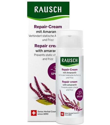 Anwendungsgebiet von RAUSCH Repair-Cream mit AmaranthRAUSCH Repair-Cream mit Amaranth - Die Cream, die strapaziertes und brüchiges Haar effektiv vor Spliss schützt. Sie schont die Haarspitzen und reduziert dabei vorhandenen Spliss deutlich. Ihre kraftvolle Wirkung verhindert die antistatische Aufladung sowie unerwünschten Frizz. Das Haar wird glatt und gleitet leicht durch die Finger, ohne zu fetten oder zu verkleben. Mit Sheabutter und Amaranthöl sowie auserwähltem Zinnkraut-Extrakt und Inca-Inchi-Öl.Wirkungsweise von RAUSCH Repair-Cream mit AmaranthRAUSCH Repair-Cream mit Amaranth verwöhnt strapaziertes oder brüchiges Haar. Nicht nur die Spitzen profitieren von der Pflege-Power der reichhaltigen Cream. Sie verhindert auch ein statisches Aufladen der Haare und sagt Frizz den Kampf an. Und das ganz schön ergiebig: Pro Anwendung reicht ein Pump Hub. Für starkes, glänzendes Haar, das sich wunderbar weich und gepflegt anfühlt und ganz easy durch die Finger gleitet.